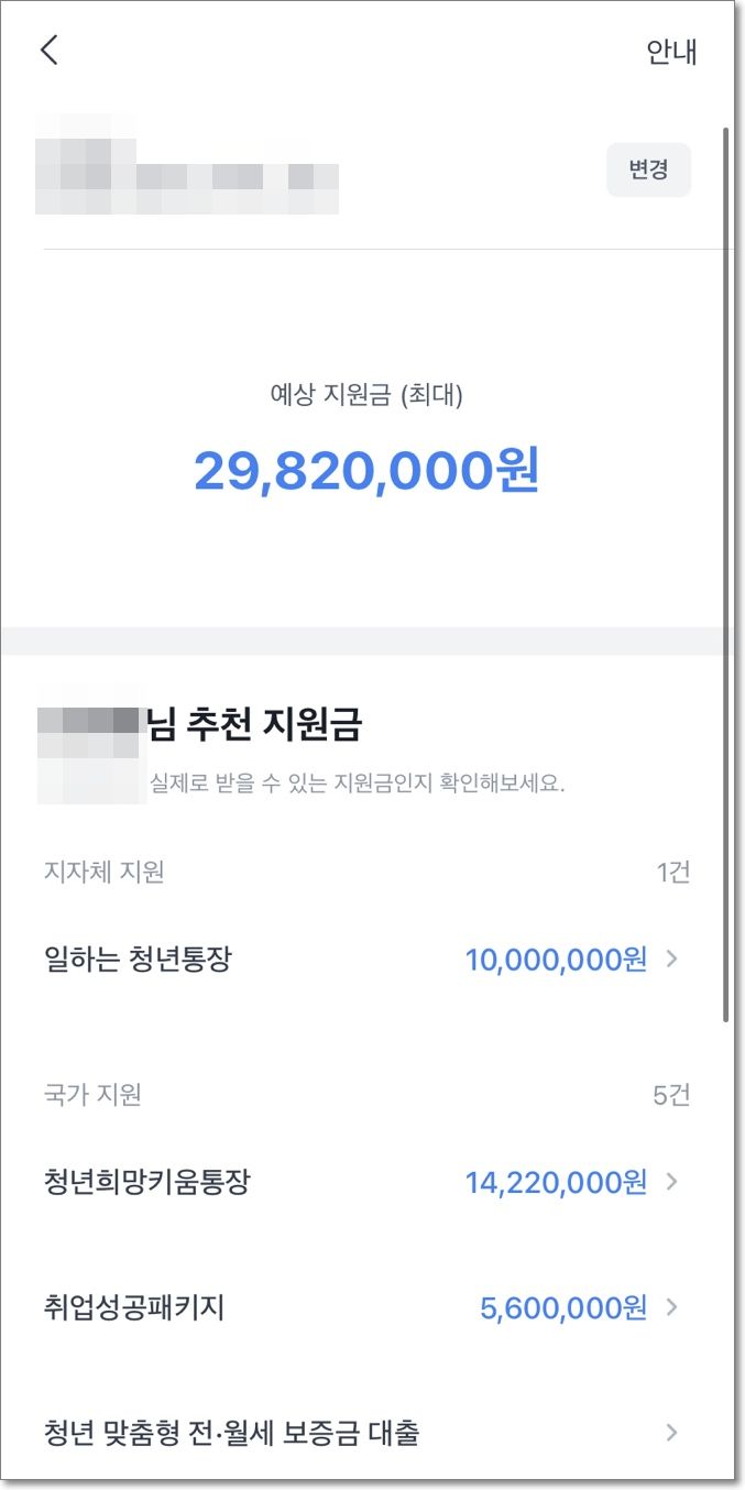 자, 이제 왼쪽 사진과 같은 화면을 보실 수 있을 겁니다. 여기서 화면 아래에 있는 '내 지원금 확인하기'를 터치합니다.