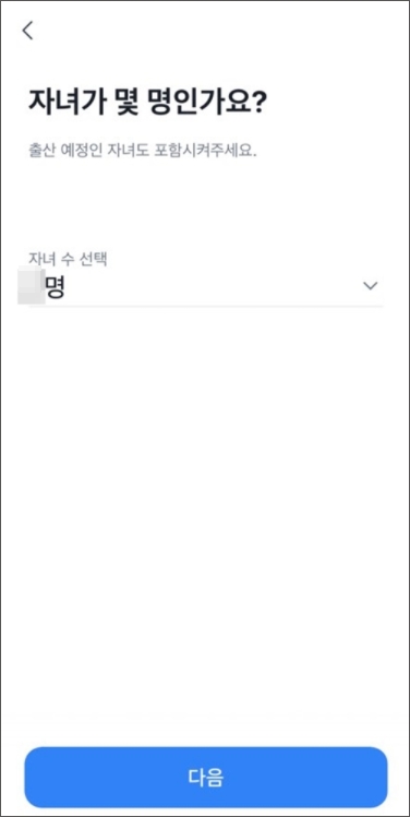 직군(대학생, 직장인, 취업준비생, 기타) 입력 및 자녀 수도 입력해줍니다. 직군이나 자녀 수에 따라서 지원되는 지원금 정책들도 있기 때문에 꼼꼼히 입력해 줍니다.